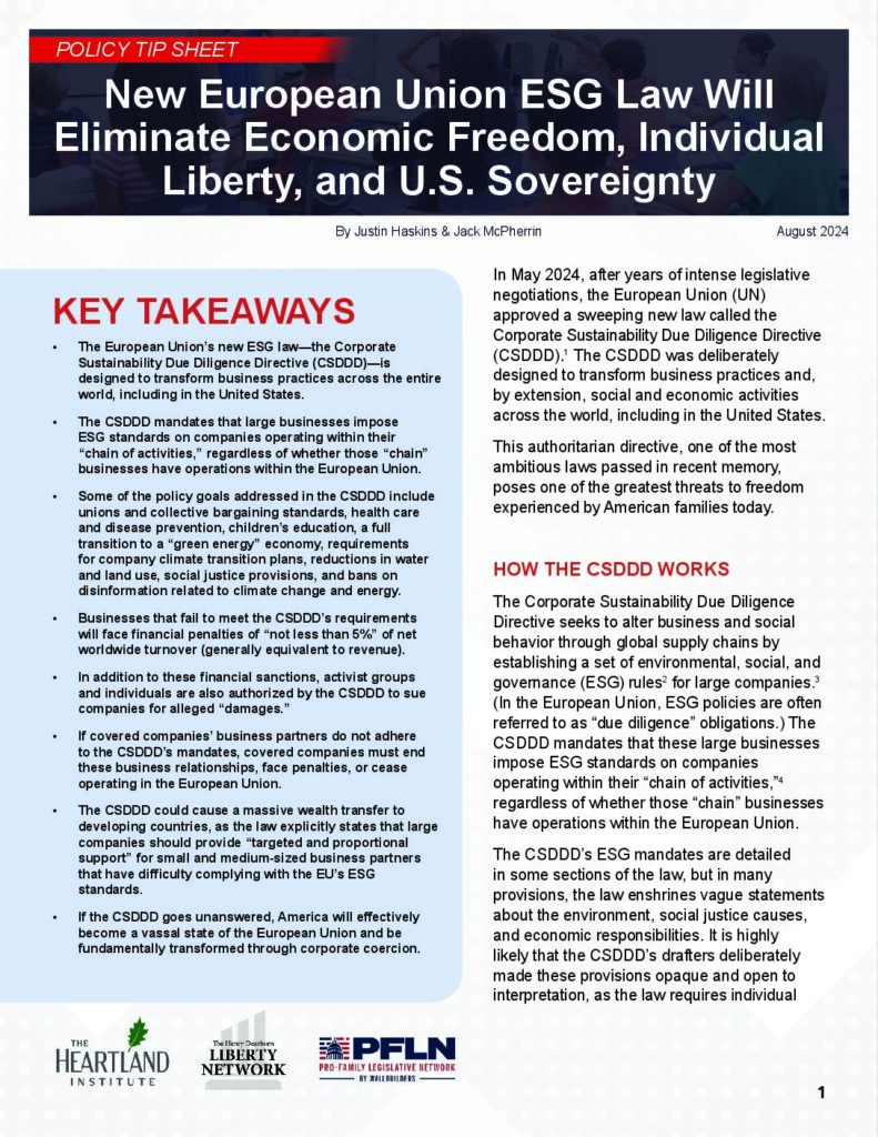 New European Union ESG Law Will Eliminate Economic Freedom, Individual Liberty, and U.S. Sovereignty